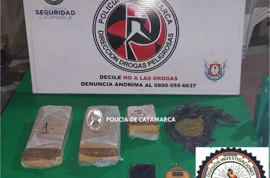 De acuerdo con la información policial, una mujer de 32 años denunció en el precinto sexto que un sujeto junto a dos menores de edad le habían arrebatado el teléfono celular. De averiguaciones realizadas el personal de la Division Investigaciones se hizo presente en el domicilio antes mencionado y conjuntamente al personal judicial registraron el inmueble. Es decir, que ingresaron al mismo con autorización del propietario. Para los policías en el lugar estaba el teléfono robado. Sin embargo, en la requisa encontraron en el interior de un chifonier dos panes compactos de una sustancia herbácea, la que, al ser sometida a la prueba de campo, arrojó positivo marihuana en un peso total de 2.510 gramos.