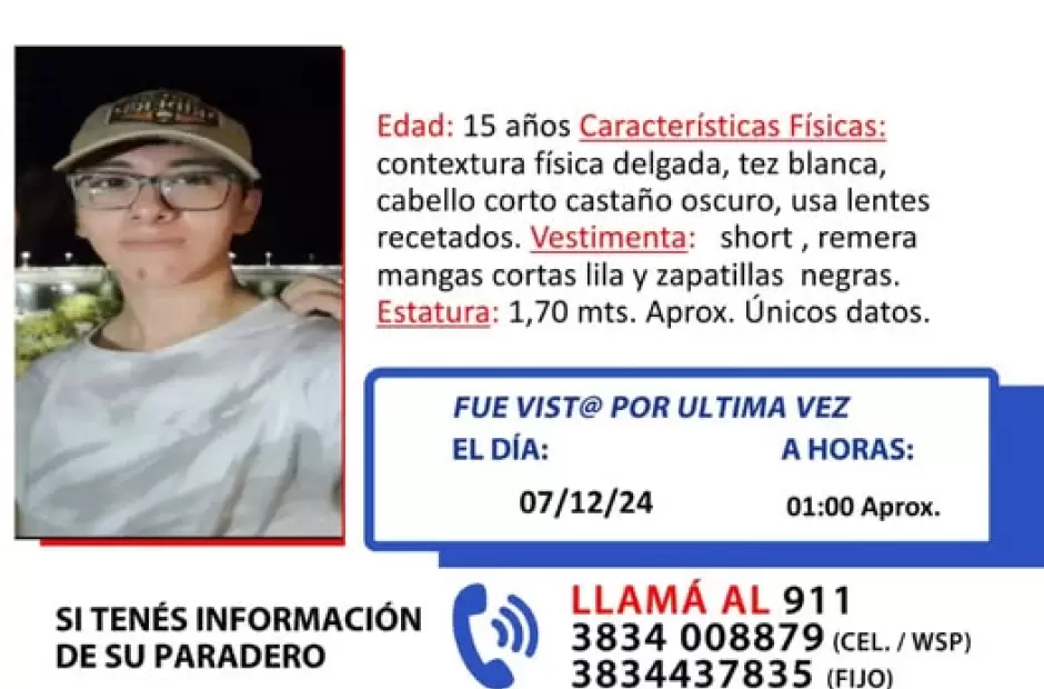 Quienes posean información deben comunicarse al 911 ó al 3834 008879 ó al 3834 437835.