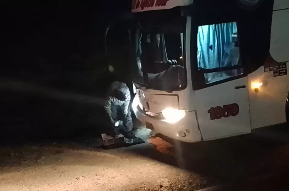Un colectivo de la Empresa 25 de Agosto que salio desde Capital con destino a la ciudad de Belén, en la noche de ayer, fue protagonista de un nuevo siniestro vial. El hecho tuvo lugar mientras recorría Quebrada de La Cébila y fue allí donde choco contra un animal que se encontraba suelto en la ruta.