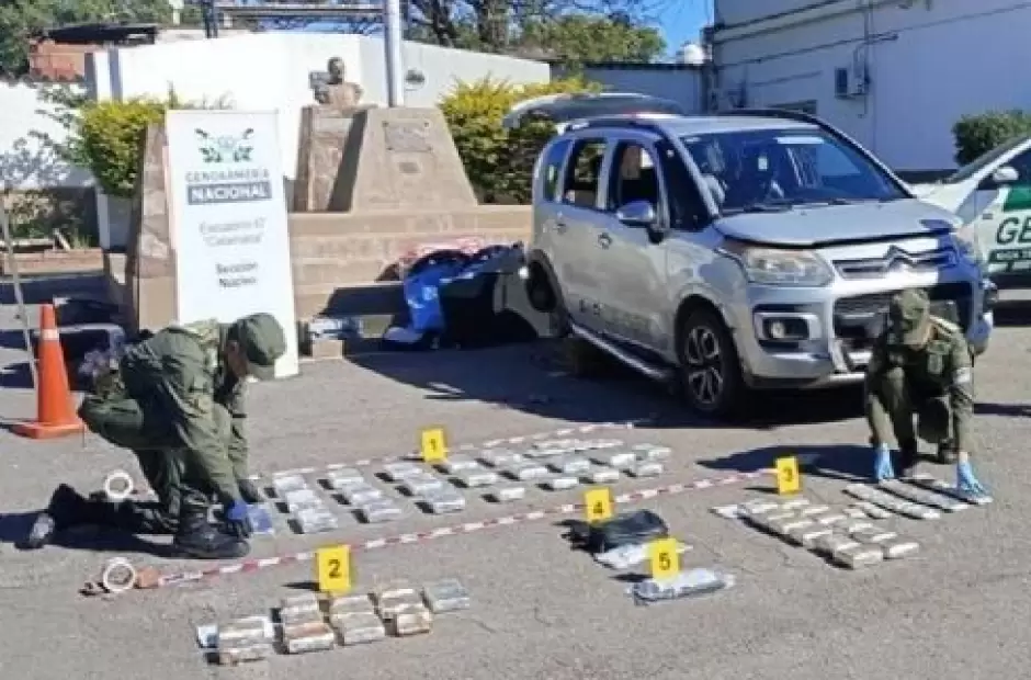 Un procedimiento llevado adelante por Gendarmería Nacional permitió asestar un fuerte golpe al narcotráfico con el secuestro de un importante cargamento de droga que era transportado en un vehículo particular. El operativo se concretó en la zona de El Portezuelo, donde efectivos de la fuerza federal interceptaron un automóvil que despertó sospechas durante un control.