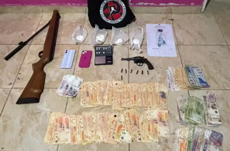 En el lugar, los policías encontraron además un revólver calibre .32 largo, junto a siete cartuchos de distintos calibres, específicamente 9 mm y .32 mm, lo que refuerza la hipótesis de que la actividad ilegal se encontraba protegida mediante el uso de armas de fuego. Asimismo, se secuestró un rifle de aire comprimido, cuya procedencia también será investigada.