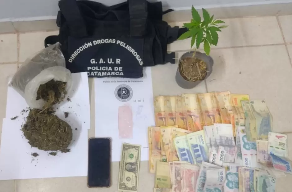 Al irrumpir en la vivienda, los policías secuestraron 379 gramos de marihuana, una planta de la variedad cannabis sativa, un tubo Eppendorf con semillas de la misma variedad, un teléfono celular marca Samsung, un dólar y la suma de $150.012 en efectivo.