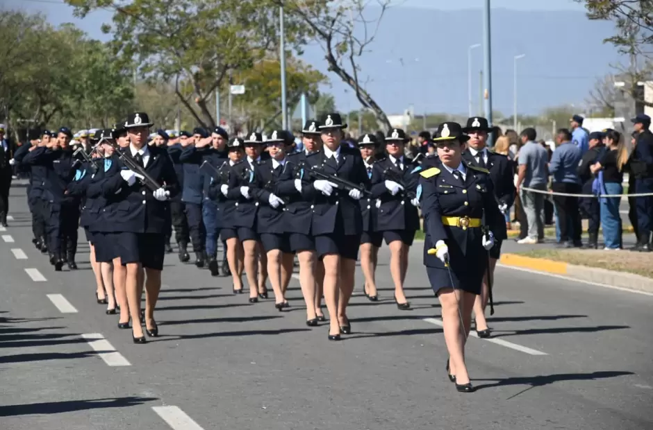 Para finalizar, los numerarios marcaron su paso gallardo frente al palco principal, acompañados por personal de la Banda de Música de la Policía de la Provincia, y también participaron efectivos pertenecientes a las Unidades Regionales y Jefaturas de Zonas del interior provincial, quienes una vez más estuvieron presentes en tan importante acontecimiento, destacando que también acompañaron niños pertenecientes a la Colonia de Vacaciones que lleva adelante la Dirección de Bienestar Policial, Policías Retirados y personal administrativo, integrantes del Servicio Penitenciario y Bomberos de la Policía Federal Argentina, que prestan servicio en el aeropuerto Felipe Varela, que también participaron del desfile.
