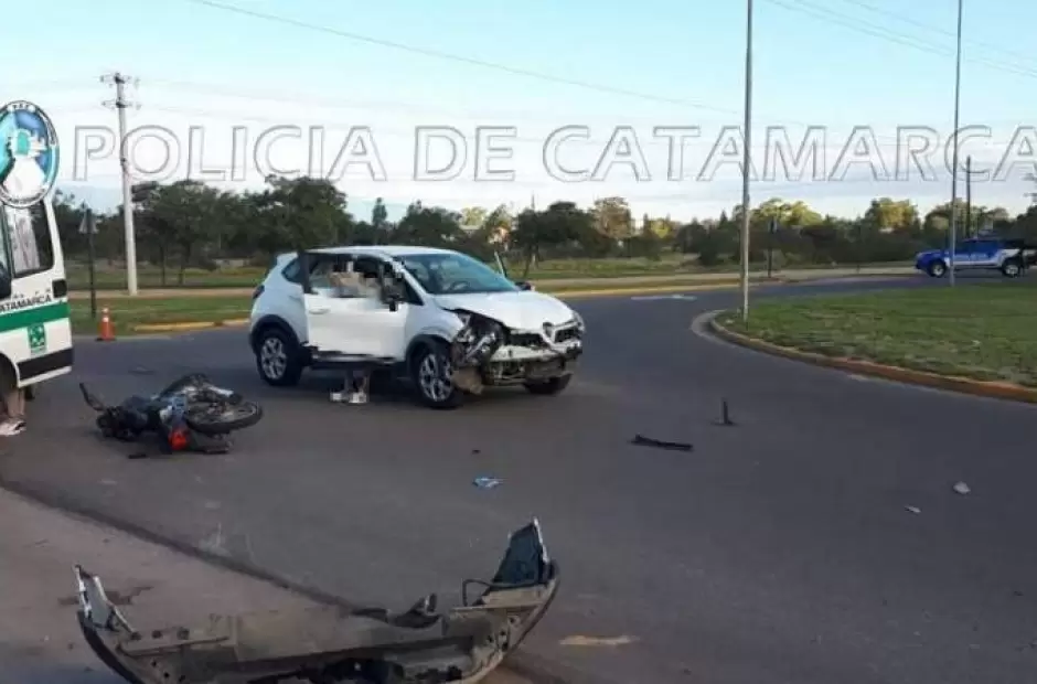 En la tarde de ayer, a las 17.20, se registró un siniestro vial en la intersección de las avenidas Recalde y Pte. Arnoldo Castillo (rotonda sur), a la altura del club hípico Catamarca.