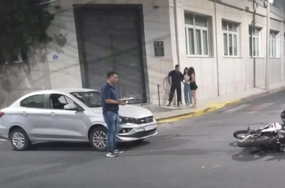Minutos después de las 1.30 hs de este domingo en la intersección de Ayacucho y Esquiú se registró un violento siniestro. El hecho estuvo protagonizado por Silvia Evangelina Rial de 40 años de, quien conducía un automóvil Fiat Cronos 1.3, color gris y una motociclista, que es quien resultó herida.