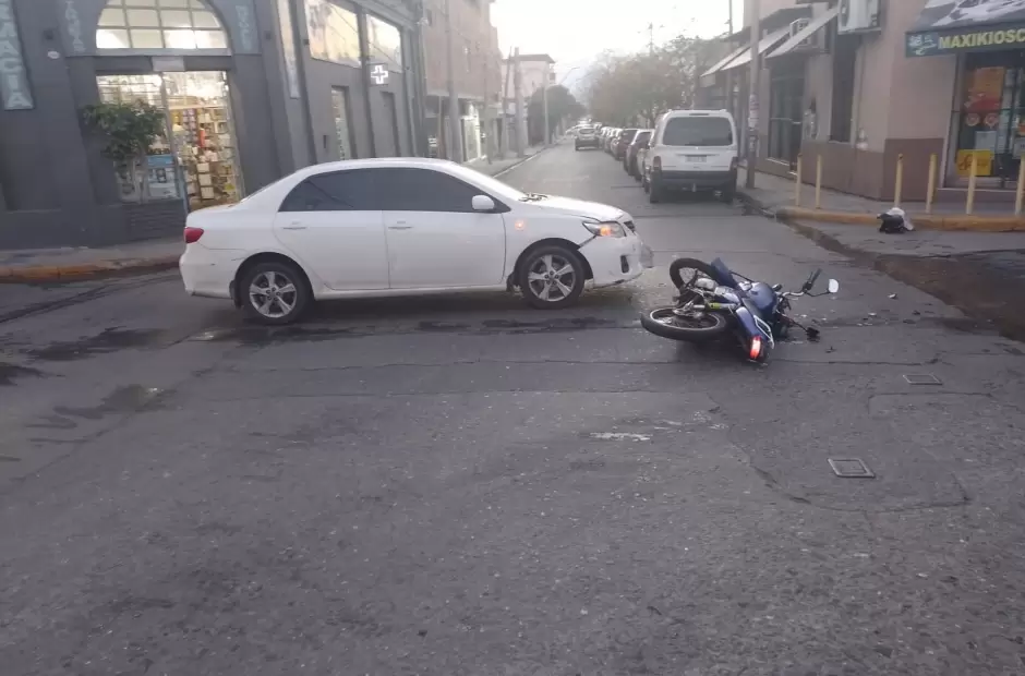 El hecho tuvo lugar en la esquina de calle Mate de Luna y Tucumán y los protagonistas del siniestro fueron una motocicleta marca Yamaha ybr 125 de color azul, conducida por Matías Agustín Vergara Gordillo de 20 años y un automóvil marca Toyota Corolla de color blanco, al mando de Marcelo Adrián Pastrana de 50 años.