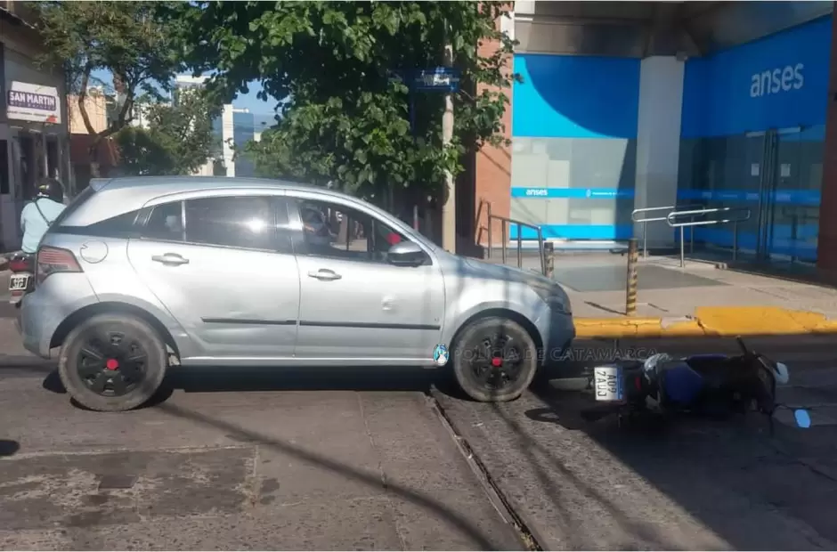 Ayer, a las 17:15, se registró un siniestro vial en la intersección de las calles San Martín y Ayacucho protagonizado por una motocicleta Gilera 110 cc., dominio A097AUJ, de colores azul y blanco, al mando de Valentina Estefanía Valdivia (20), que por razones que se tratan de establecer colisionó con un automóvil Chevrolet Agile gris, dominio JMU-475, conducido por José Miguel Jiménez (31).