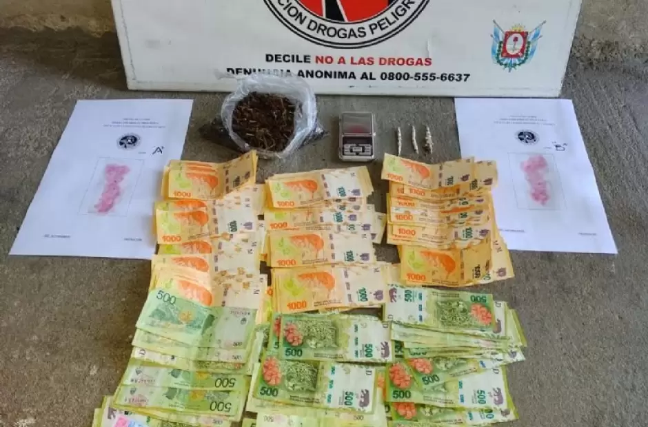 En este marco se logró secuestrar: 122 gramos de marihuana, un envoltorio con cocaína, dos balanzas tipo grameras, un revólver calibre 22 largo, cinco cartuchos calibre 22, recortes y cinta de embalar y $114.600. Hasta el momento no hay personas detenidas.