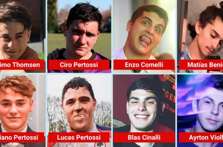 Luego, el fiscal Dávila apuntará sobre la autoría de cada uno de los acusados: Máximo Thomsen (23), Enzo Comelli (22), Matías Benicelli (23), Blas Cinalli (21), Ayrton Viollaz (23), y Luciano (21), Ciro (22) y Lucas Pertossi (23).