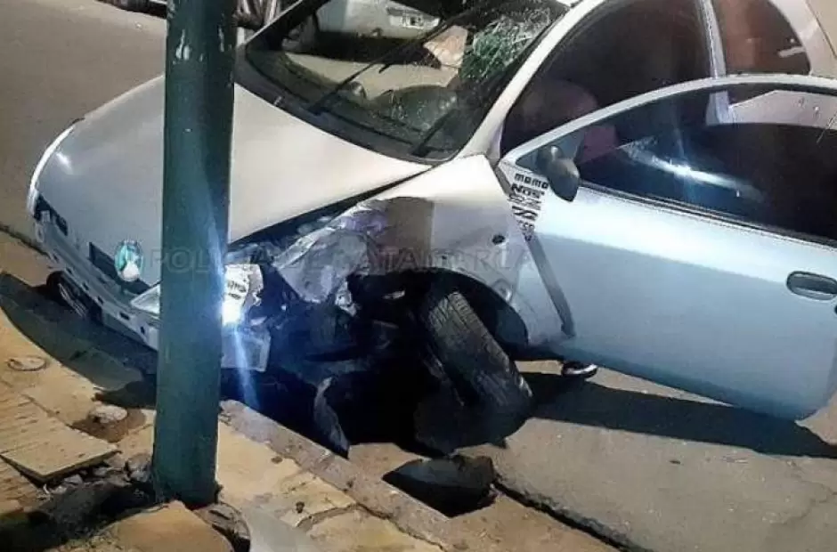 En la madrugada de este miércoles, a las 4.10, en la calle 9 de Julio al 1000, se produjo un siniestro vial. Facundo Herrera (21) circulaba en un automóvil Ford Ka Tatoo, dominio EWA-166, de color gris, acompañado por Lourdes Cerezo (22), y por causas que son materia de investigación, perdió el control del rodado y chocó contra un poste del tendido eléctrico.