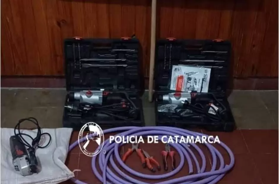 Tras una ardua investigación, personal de la Comisaría Departamental Tinogasta se hizo presente en un descampado del Barrio 8 de Diciembre, de la localidad de Santa Rosa, de ese mismo Departamento, donde luego de realizar un rastrillaje lograron recuperar 2 taladros percutores de 750W en sus respectivas cajas, 1 amoladora, ambos marca Skil, unos 13 metros de cable subterráneo y 3 pinzas de punta marca Bult, que quedaron en calidad de secuestro a disposición de la Fiscalía de la Quinta Circunscripción Judicial.