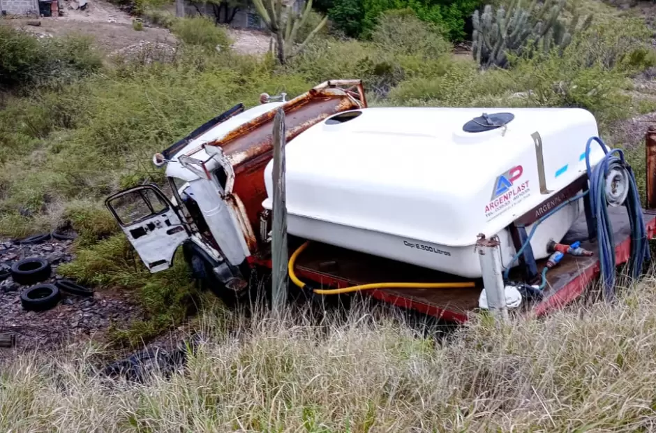 A causa de un desperfecto mecánico, en la mañana de este martes, un camión de la empresa Aguas de Catamarca perdió el control y cayó al barranco en la zona de Banda de Varela.