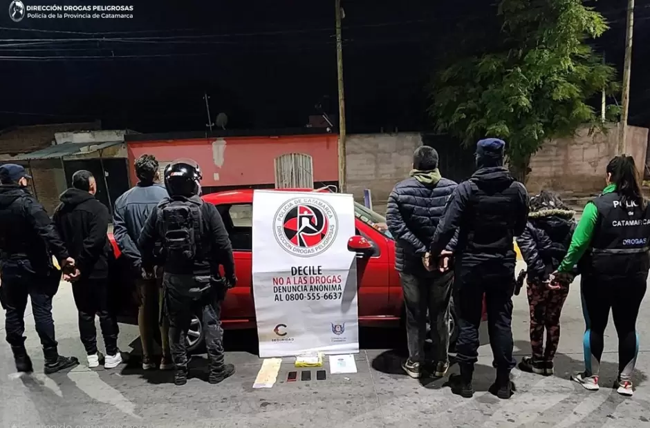 En el lugar, los investigadores interceptaron un automóvil Fiat Siena de color rojo, que funciona como Taxi, conducido por un joven de 24 años de edad, que transportaba cuatro pasajeros; dos jóvenes de 28 y un hombre de 30 años, dos de ellos oriundos de Tucumán, y una mujer de 30 años de edad.