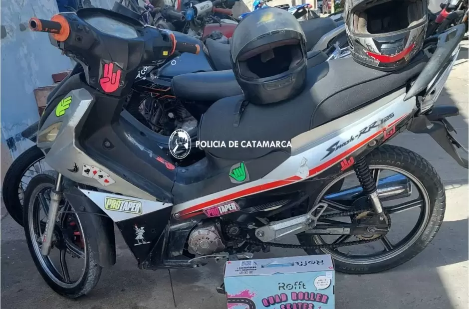 En la jornada de hoy, jueves 14 de septiembre, a las 10:30hs, por requerimiento del SAE-911, efectivos de la Seccional Quinta llegaron hasta la calle Samuel Molina, entre General Navarro y General Lavalle, donde Motoristas del Comando de Operaciones Preventivas (COP), tenían detenido a un hombre de apellido Sosa, de 32 años de edad, quien momentos antes fue captado sustrayendo una caja con un par de patines del interior de un local comercial ubicado en cercanías a la esquina de las calles San Martín y Maipú, propiedad de una mujer de 31 años, para luego darse a la fuga a bordo de una motocicleta Gilera Smash 125 cc., de color gris.