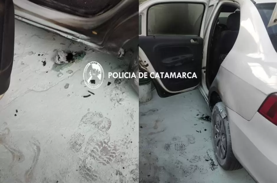 Una vez apagado el fuego los bomberos inspeccionaron el interior del automóvil, el que tenía las puertas y el baúl abierto, observando lo que sería una bomba de fabricación casera "molotov".
