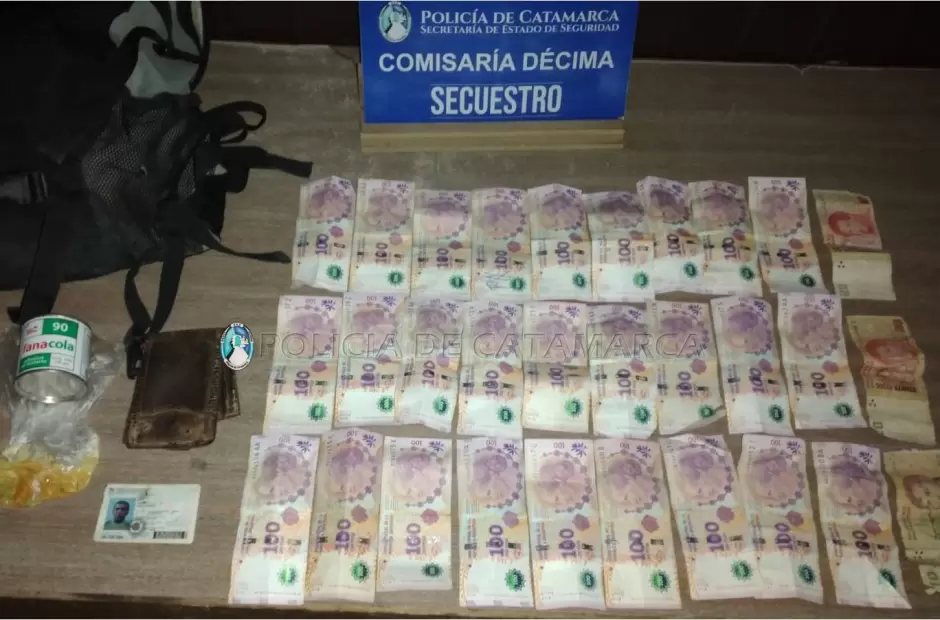 Cabe señalar, que al realizarle la requisa correspondiente, le encontraron entre las prendas de vestir una billetera con documentación a nombre de otra persona y dinero en efectivo, como así también llevaba una mochila que contenía un bote de pegamento epóxido, en virtud de lo cual todos los elementos quedaron en calidad de secuestro.