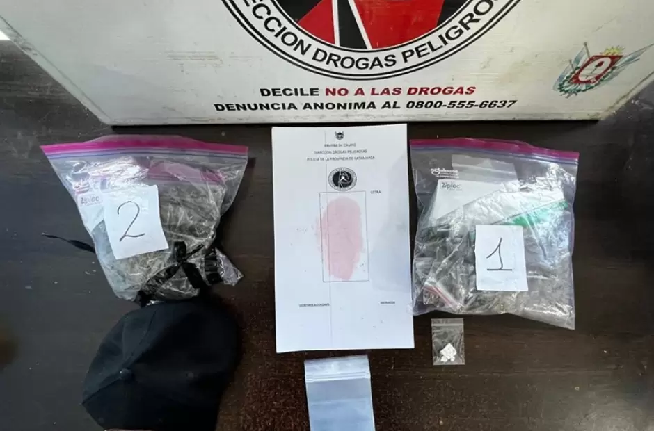 Al identificar a los pasajeros del micro, con la ayuda de la can "Lía", adiestrada para detectar estupefacientes, los policías encontraron en el interior de un bolso, que sería propiedad de un joven de 20 años de edad, dos bolsas grandes con cierre hermético, que en su interior contenía otras doce más de tamaño pequeño, con una sustancia herbácea que al ser sometida a la prueba de campo correspondiente, arrojó como resultado que se tratarían de unos 176 gramos de cogollos de marihuana, que quedaron en calidad de secuestro, al igual que un troquel de LSD de seis celdas, un teléfono celular, un ticket, un boleto y documentación de interés para la causa.