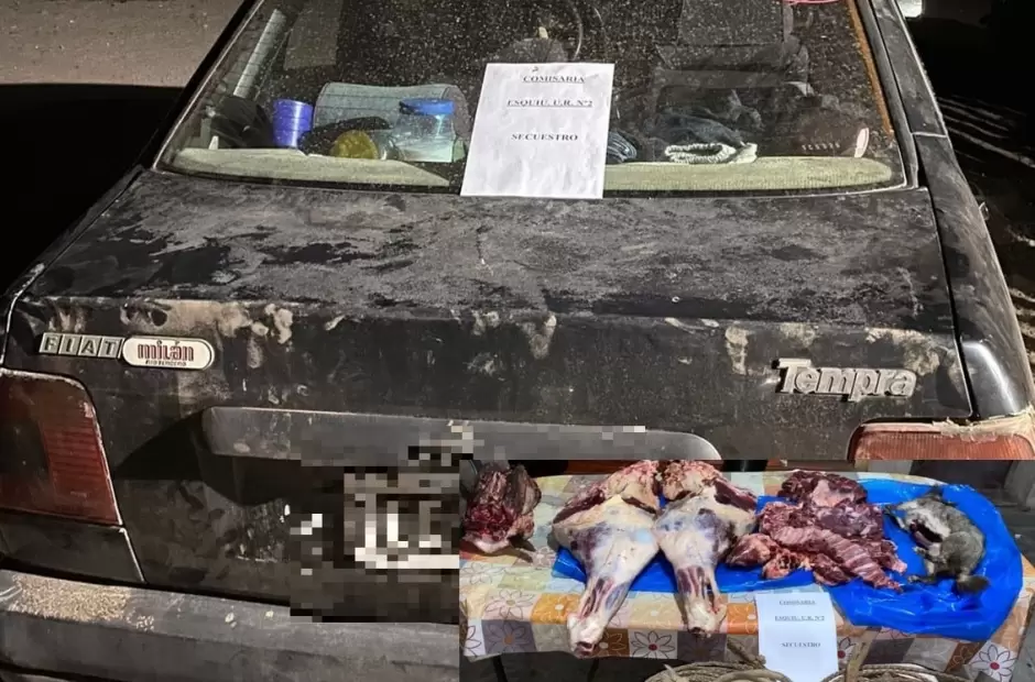 Minutos más tarde, los Policías hicieron lo propio con un hombre de apellido Luján (39), quien circulaba en un automóvil Fiat Tempra, de color gris, transportando en el baúl del rodado bolsas de plástico que un su interior contenían carne vacuna y un (01) ejemplar de vizcacha.