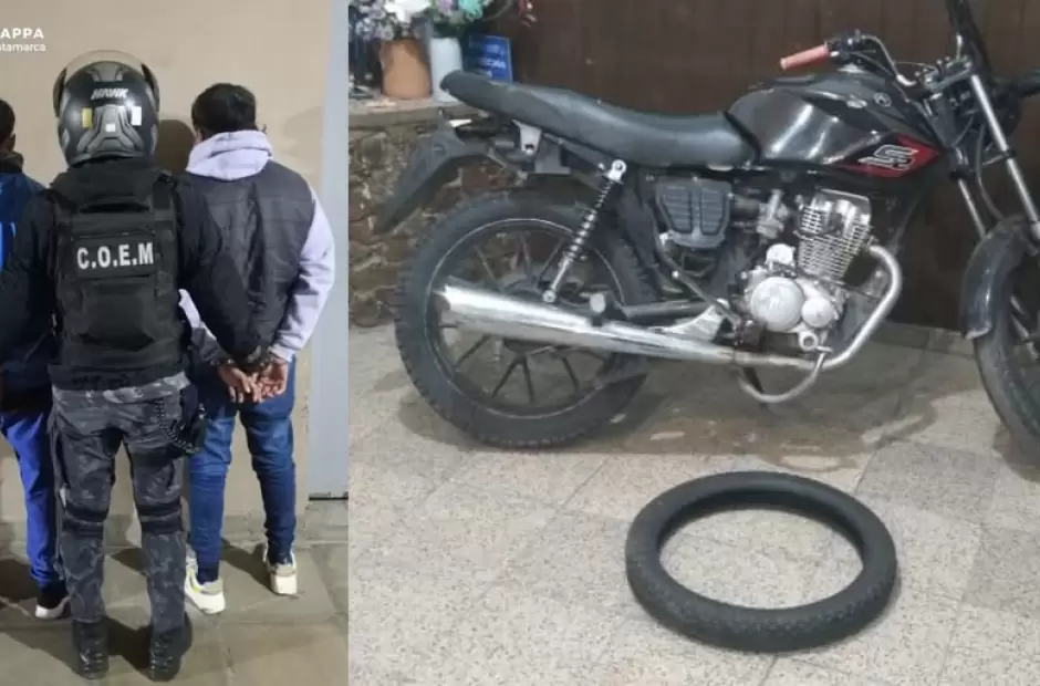 Durante recorridos preventivos por la intersección de las calles 25 de Mayo y Santa Fe, motoristas policiales aprehendieron a dos jóvenes de apellidos Araya (23) y Brizuela (26), quienes habrían sido sorprendidos circulando en contramano a bordo de una motocicleta Motomel S2 150 cc., y al notar la presencia policial intentaron darse a la fuga, no logrando su cometido.