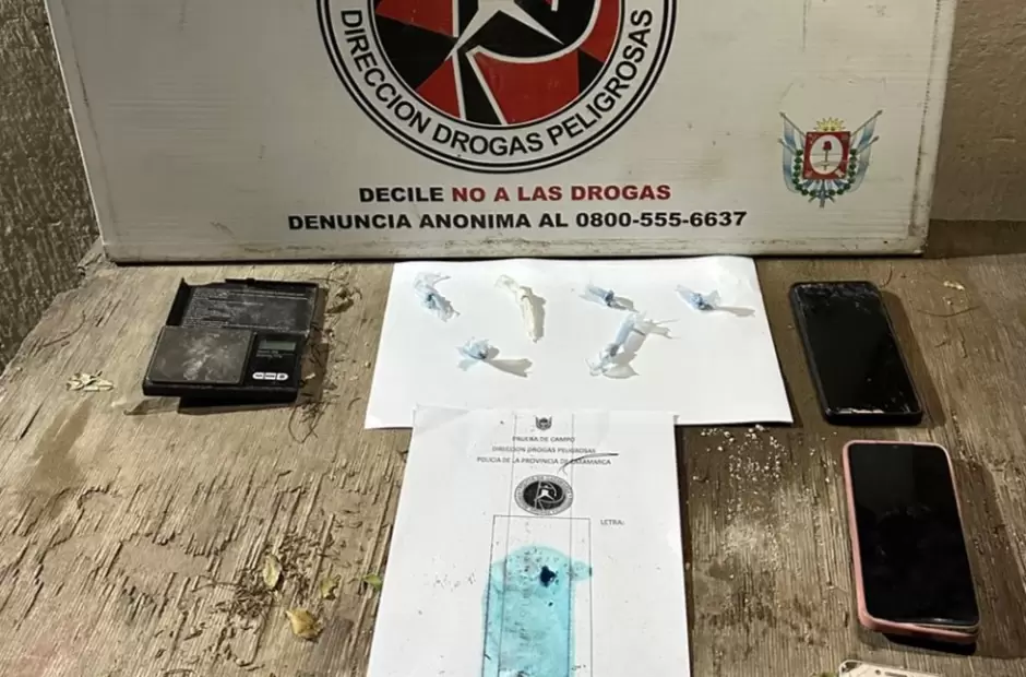 Al irrumpir en el inmueble y bajo las directivas del Juzgado Federal, los policías encontraron seis envoltorios de plástico, que en su interior contenían una sustancia tipo polvo que, al ser sometida a la prueba de campo correspondiente, arrojó como resultado que se trataría de cocaína, que quedó en calidad de secuestro como así también tres (03) teléfonos celulares y una balanza de precisión.