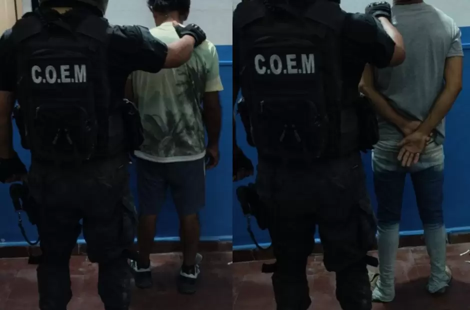 En la intersección de las calles Obispo Segura y Ramón Ahumada, policías aprehendieron a dos masculinos de apellidos Monasterio (32) y López (47).