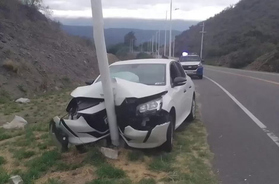 El siniestro vial se registró alrededor de las 11:00 de esta mañana, y por causas a determinar, un automóvil Peugeot 208 al mando de Walter Galván (25) salió de la calzada e impactó con un poste de alumbrado público.