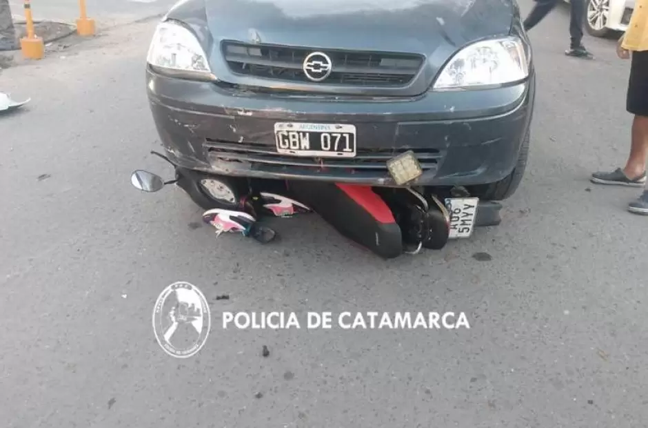 Sucedió a las 18:20 en la intersección de avenidas Hipolito Yrigoyen y Manuel Pedraza donde un automóvil Chevrolet Corsa II gris, conducido por Paulo Marcelo Figueroa (46) terminó colisionando contra una motocicleta Gilera 100 cc. en la cual se trasladaban Ariel Marcelo Coronel (48) y Martha Lidia Doria (54).