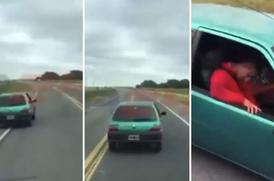 “Ey, flaco, están en el medio de la ruta”, le grita y no obtiene respuesta ni movimiento de los dos ocupantes del coche.