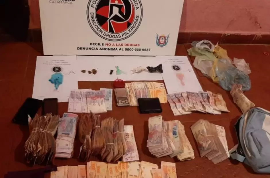 Tras irrumpir en el inmueble, los Policías procedieron al secuestro de una (01) balanza digital, una (01) dosis de Cocaína, recortes varios, un (01) triturador, la suma de trescientos veinte mil quinientos setenta pesos ($320.570) en efectivo, discriminados en billetes de distinta denominación, dos (02) teléfonos celulares, tres (03) envoltorios de plástico con una sustancia tipo herbácea y compactada, compuesta por hojas, tallos y semillas, los cuales al ser sometidos a la prueba de campo correspondiente arrojó que se trataría de 28 Gr. de Marihuana.