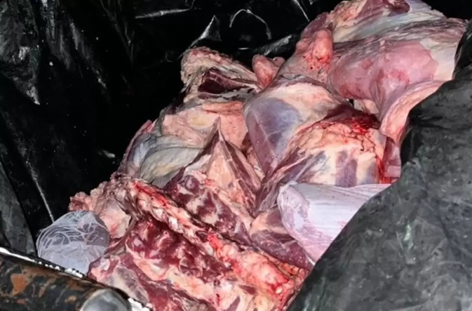 Al inspeccionar el rodado, los policías observaron que esta persona llevaba en el baúl carne vacuna sin la cadena de frío y medidas de salubridad correspondientes, que estaba envuelta en un plástico.