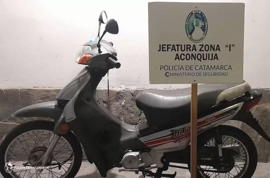 En el puesto caminero El Clavillo, ubicado en la localidad de Aconquija, departamento Andalgalá, efectivos de la Dirección de Seguridad Vial de la Policía de la Provincia procedieron al secuestro de una motocicleta Motomel Blitz 110 cc., de colores gris y negro.