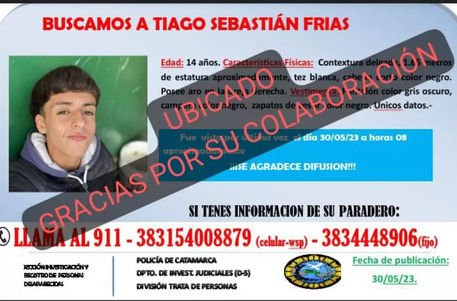Encontraron sano y salvo al adolescente de 14 años que era intensamente buscado