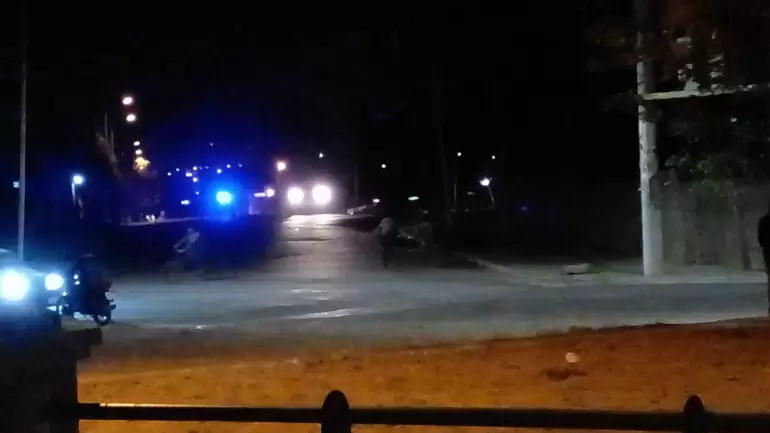 Tras el enfrentamiento a tiros, llegó dos móviles policiales y se ubicaron al costado de la cancha del Club Social y Deportivo Los amigos. Al lugar también arribó una ambulancia.
