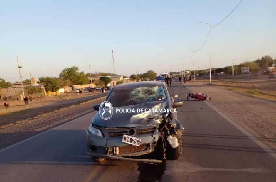 En el lugar, los policías constataron que, mientras un joven identificado como Esteban Ezequiel Ruedas (26), oriundo de la Provincia de Buenos Aires, circulaba en una motocicleta Honda CG Titán 150 cc., dominio 891-JZE, de color rojo, por motivos que se investigan colisionó con un automóvil Volkswagen Gold Trend verde, dominio LDQ-252, al mando de Miguel Ángel Navarreta (46), en compañía de Sandra Rosario Cejas (46).