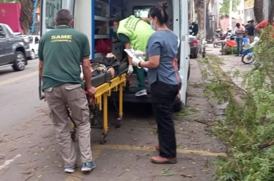 Tal es el lamentable caso que se registró esta tarde en el departamento Valle Viejo, donde una mujer sufrió lesiones luego de que le cayera encima una rama mientras transitaba por avenida Presidente Castillo, a la altura de Patio Palmeras, en Villa Dolores.