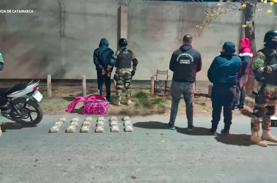 En la tarde de este miércoles, tras una ardua y minuciosa tarea investigativa, bajo las directivas del Juzgado Federal, a cargo del Dr. Miguel Ángel Contreras, Secretaría a cargo de los Dres. Raúl Enrique Córdoba y Luis Alberto Baracat, efectivos de la Dirección Drogas Peligrosas de la Policía de la Provincia interceptaron dos motocicletas en la calle Hermanas Villagrán de la localidad de Polcos, Departamento Valle Viejo, y procedieron a la detención de dos hombres de 33 y 43 años de edad, y al secuestro de 33 ladrillos compactados conteniendo una sustancia herbácea, que ambos llevaban en bolsos.