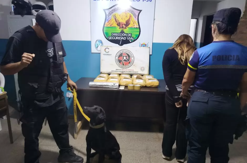 En la noche de ayer, a las 22:30, efectivos de la División Canes Antinarcóticos, dependientes de la Dirección Drogas Peligrosas de la Policía de la Provincia, llevaban adelante un operativo de control vehicular en el Puesto Caminero El Portezuelo, emplazado sobre la ruta nacional N° 38, en la localidad de Santa Rosa, Departamento Valle Viejo.