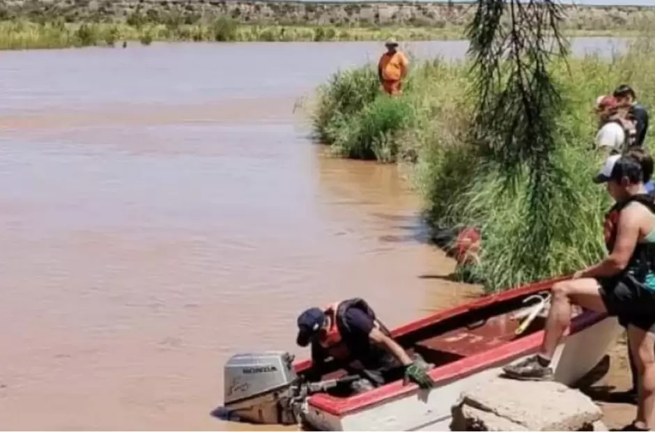 Los bomberos de Catriel, en Río Negro, también se sumaron a la búsqueda desde el domingo y realizaron un rastrillaje con embarcaciones y a pie en la zona donde finalmente encontraron el cuerpo.