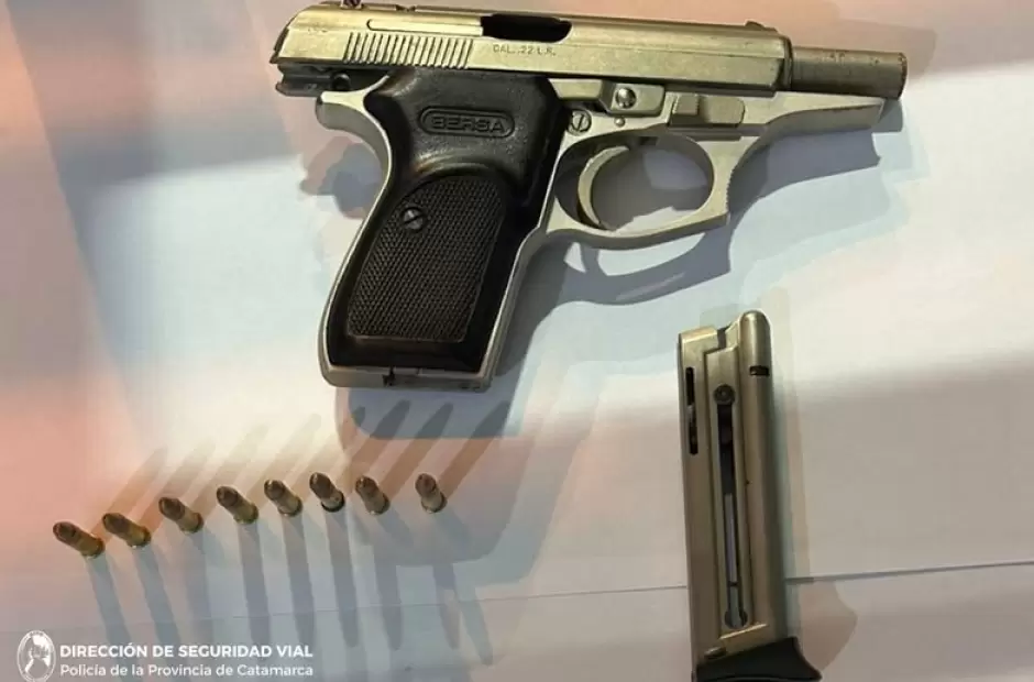 Al inspeccionar el rodado, los policías encontraron un arma de fuego Bersa Thunder calibre 22., con su respectivo cargador y ocho (08) cartuchos, que quedaron en calidad de secuestro, debido a que el propietario no contaba con la documentación correspondiente.