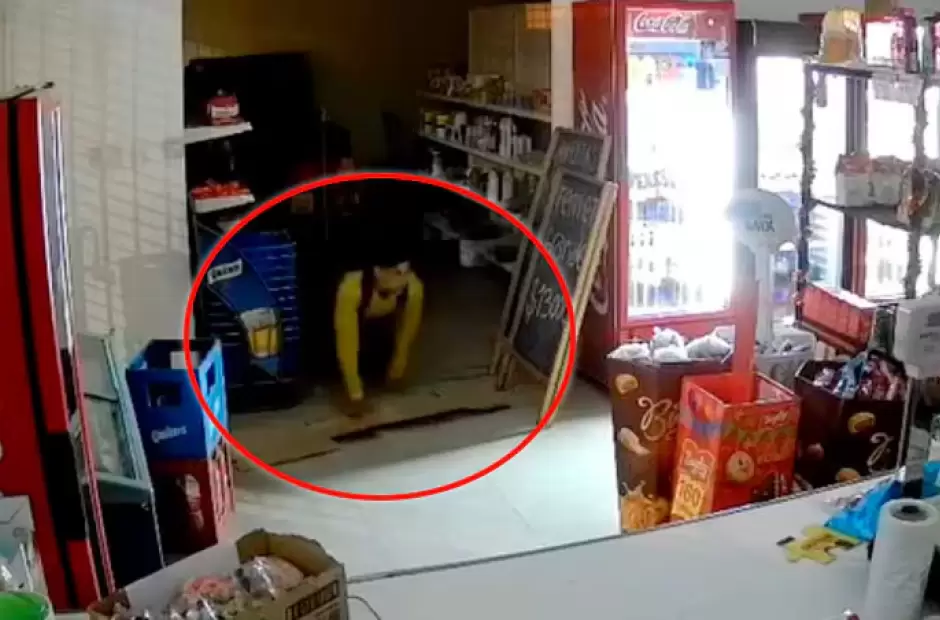 Las imágenes captadas por el sistema de videovigilancia, registradas a las 00:10 del pasado 14 de enero, muestran con claridad la mecánica del delito. En el video se observa cómo uno de los delincuentes accede al local de una forma poco habitual: ingresa gateando por la abertura forzada, mientras su cómplice ya se encontraba dentro del comercio, listo para sustraer la mercadería.
