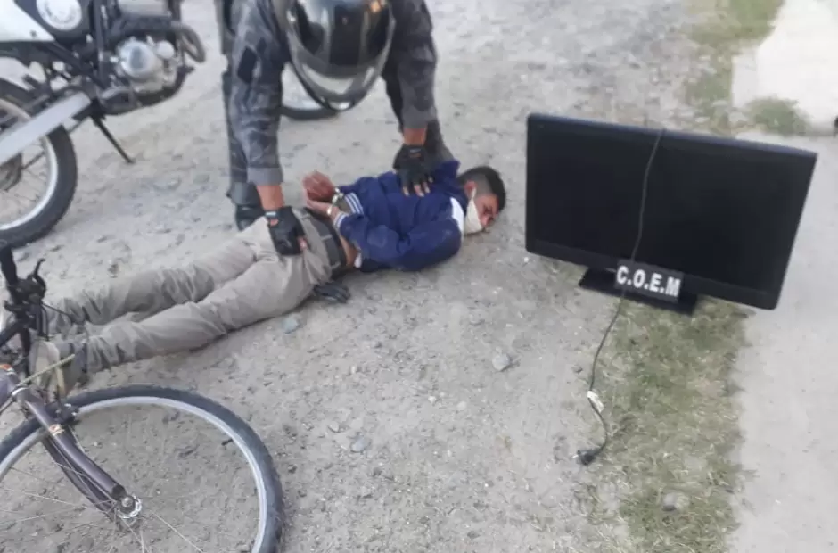 El hecho sucedió a la mañana, cuando la joven de 17 años caminaba sola por el lugar. Tras robarle la cartera, el sujeto perdió el DNI que permitió identificarlo. En otro ilícito, la policía arrestó a un ladrón cuando huía con un televisor (foto).