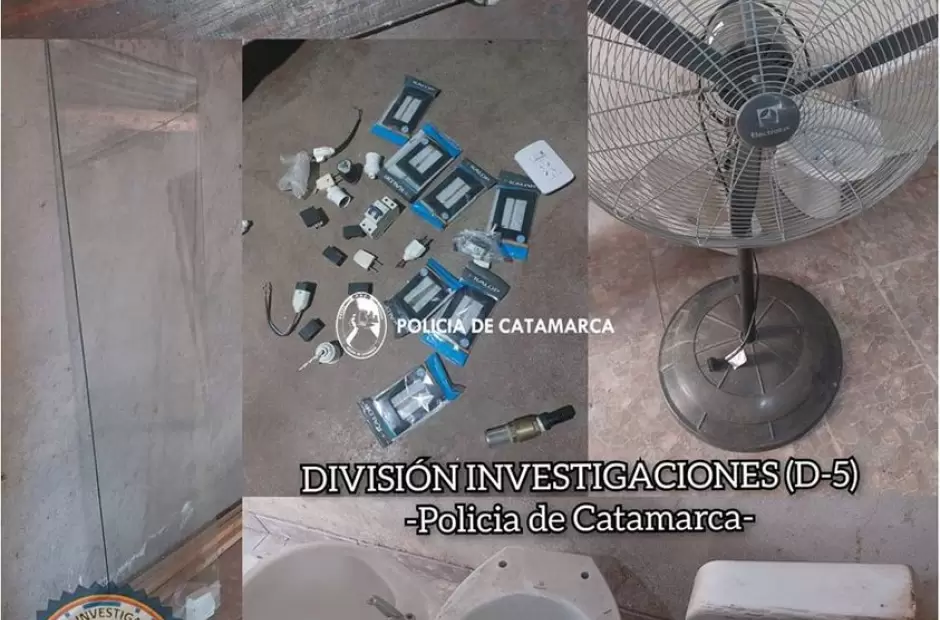 En el lugar, los policías recuperaron una (01) placa de acrílico, una (01) tenaza, un (01) ventilador marca Electrolux, un (01) inodoro, un (01) lavamanos, una (01) mochila de baño, todos marca Ferrum, y accesorios de electricidad que estarían vinculados con el delito.