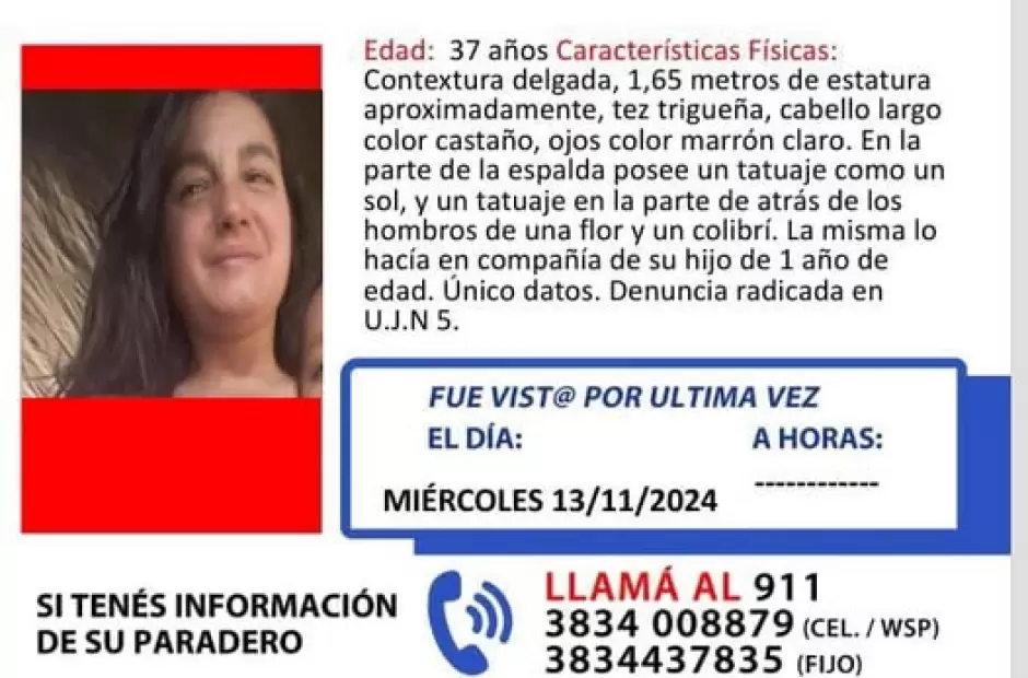 A quienes posean información, se los invita a brindarlos al 911 ó al 3834 008879 ó al 3834 437835.