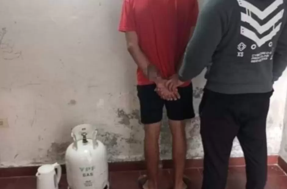 El sujeto fue sorprendido cuando intentaba comercializar una garrafa de 10 kg. y una (01) pava eléctrica, marca Durabrand.