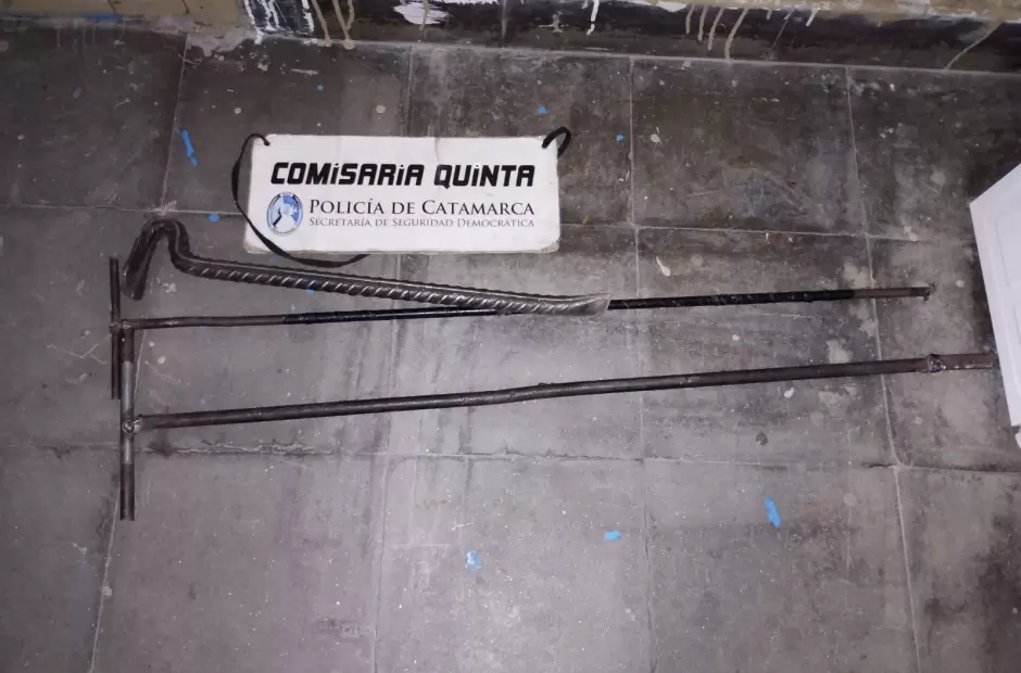 Los policias se desplazaron hasta una casa en mención, y tras el permiso correspondiente, del lugar se rescató y secuestró dos varillas tipo "T" y una palanca de fuerza hecha con un hierro del 16, que una punta tiene un gancho.