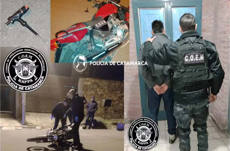 Este sábado a la noche a las 21:30, personal del grupo COEM-Kappa realizaba recorridos preventivos por la intersección de las calles Samay Huasi y Domingo de Vergara cuando habría observado que dos sujetos que circulaban a alta velocidad en dos motocicletas se fugaron al notar su presencia. De inmediato, las patrullas salieron detrás de los motociclistas iniciándose una persecución, en la cual uno de ellos dejó abandonado el rodado. Se trata de una moto Honda CG Titán 150 cc., de color rojo, la que quedó en calidad de secuestro, para luego continuar la huida a pie, ingresando al interior de un cajero automático ubicado en la avenida Misiones. Al ser alcanzado por los policías, el vándalo les esgrimió un elemento punzante de fabricación casera conocido como "espadita", amenazando con atentar contra su vida. Luego de unos minutos, los policías lograron reducir al sujeto, quien tras ser trasladado a la comisaría fue identificado con el apellido Agüero de 24 años. Además, le secuestraron la "espadita". En tanto, el otro sujeto logró escapar.