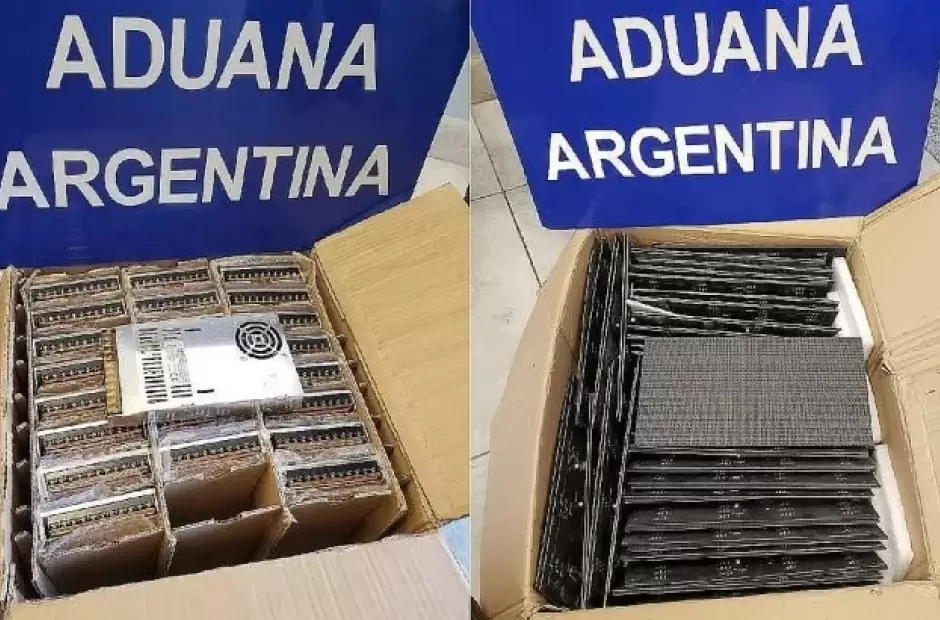 "Mediante esta maniobra, el pasajero intentó ingresar de contrabando 574 módulos y 72 fuentes de pantalla LED, los cuales carecían del correspondiente aval aduanero que justificara su legal tenencia y de los demás certificados especiales emitidos por otros organismos con intervención previa como, por ejemplo, la certificación eléctrica exigida para este tipo de productos", detalló la Aduana en un comunicado.