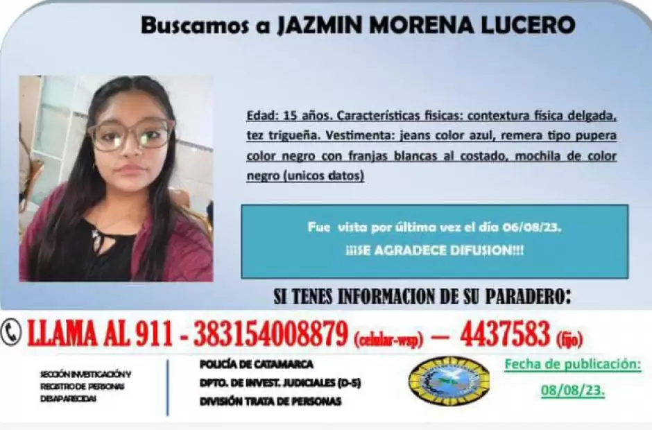 Según la información brindada, Jazmín Morena Lucero tenía intenciones de salir de la ciudad por medios propios, y fue en esa circunstancia que fue encontrada en cercanías al monumento Felipe Varela, sobre la Av. Presidente Castillo.