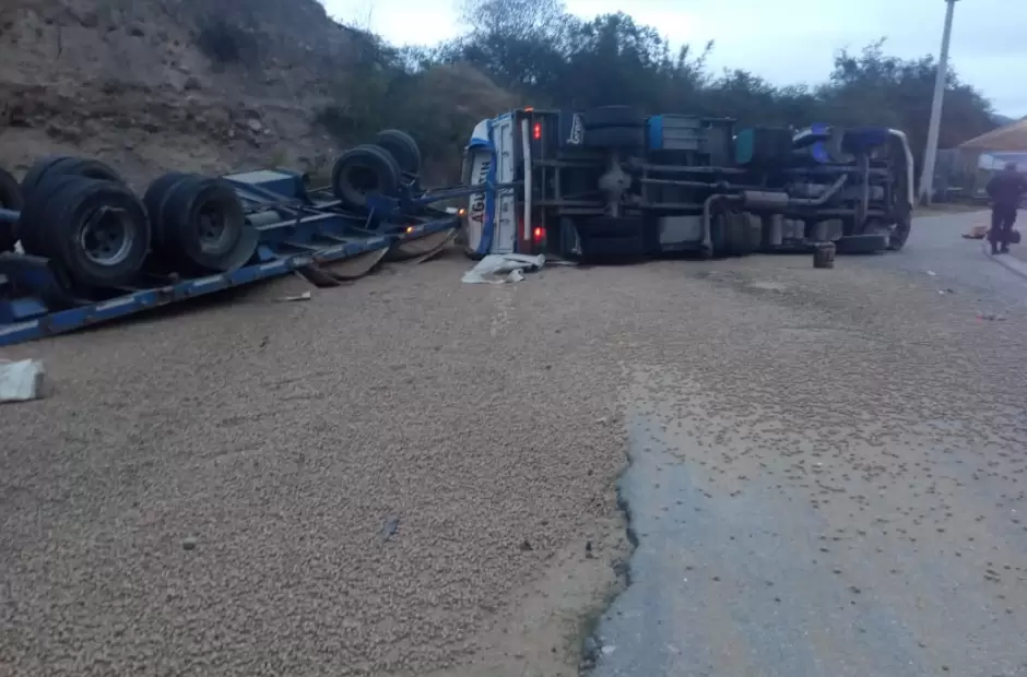 Por causas que se tratan de establecer, el conductor del camión perdió el control del rodado saliéndose de la ruta y sufriendo el vuelco del mismo.
