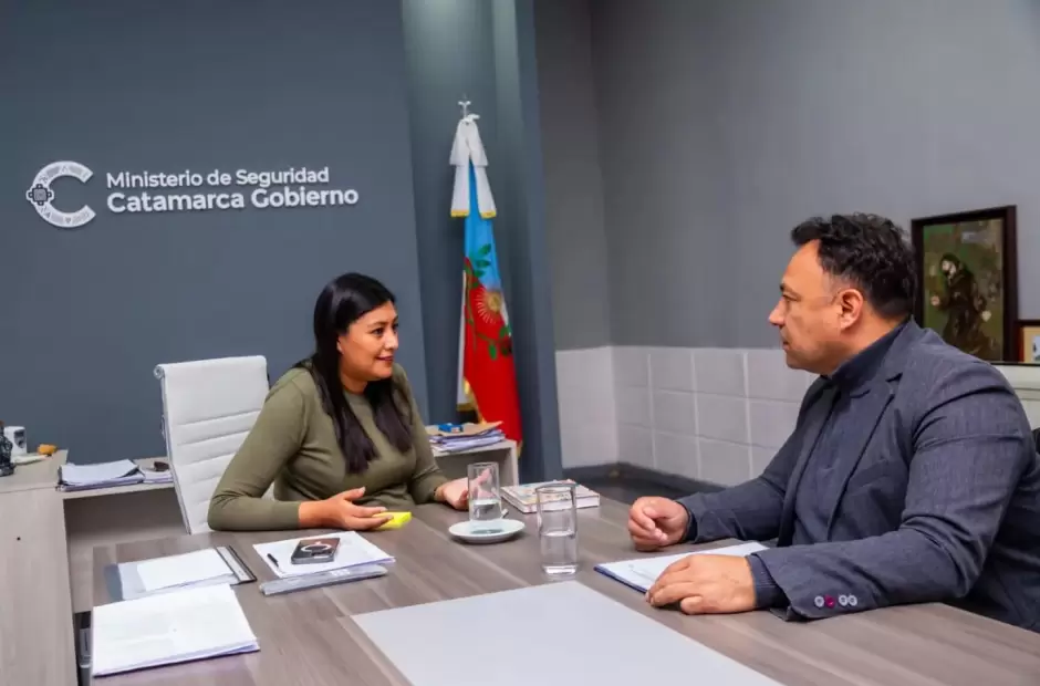 La Ministra de Seguridad, Fabiola Segura, mantuvo una reunión de trabajo con el Intendente de Belén, Cristián Yapura, con el objetivo de evaluar y monitorear los avances en materia de seguridad que se están llevando a cabo en la localidad por parte de la Unidad Regional N°3.